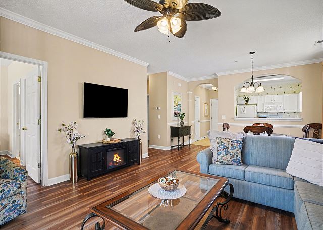 Arbor Trace #921 is a second-floor gem that features 2 bedrooms and 2 baths. This beautifully decorated and spacious condo offers everything you need for an enjoyable beach getaway. The well-appointed kitchen leaves nothing to be desired, ensuring your culinary needs are effortlessly met. The living room invites you to unwind in comfort, complete with a 55" Flat Screen TV for your entertainment pleasure. Plenty of seating is available for your relaxation in the living and dining room areas. It has recently been updated with all new flooring throughout. You will love the patio for morning coffee or afternoon cocktails with easy access from the living area.