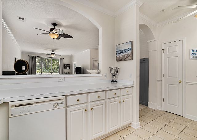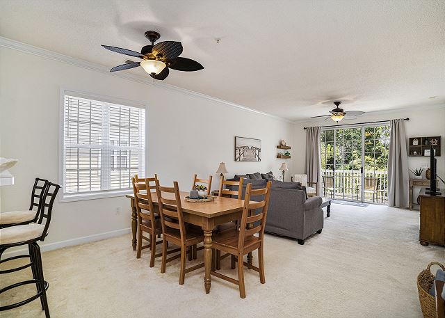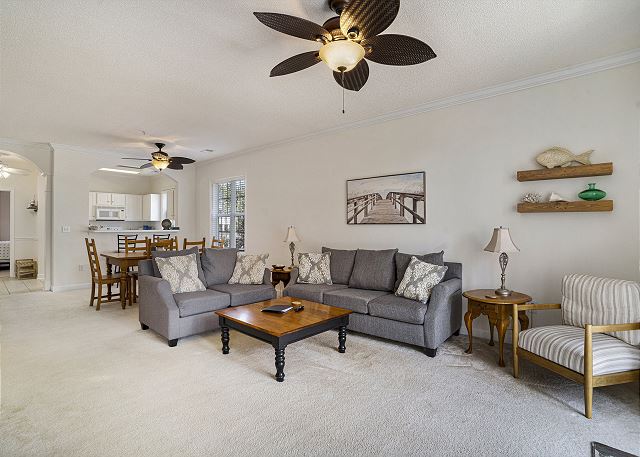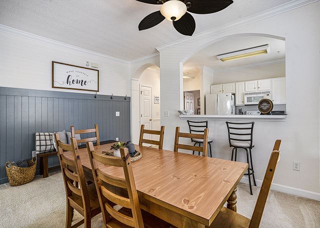 Introducing Ironwood #1621: A 3-bedroom, 2-bathroom condo nestled on the second floor of a walk-up building in Barefoot Resort. This inviting end unit, drenched in sunlight, offers an ideal haven for golfers, families, and friends. The well-equipped kitchen ensures you have all you need to craft your favorite meals. Ample seating in the dining area is perfect for lively family game nights.