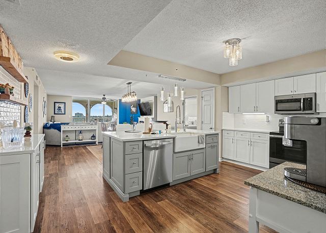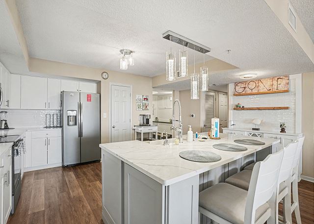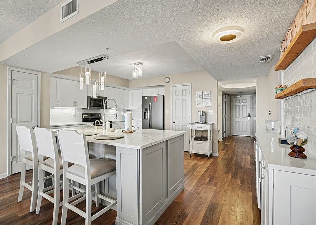 Yacht Club Villas #3-704 is a beautifully appointed 4 Bedroom/4 Bath condo located on the 7th floor in Building #3. This spacious and updated property allows your family and guests to relax in complete comfort and style. The living room is very comfortable and has a large Flat screen TV to enjoy your favorite shows. The kitchen has been renovated with all the bells and whistles that you will love when you are cooking your favorite meals. The dining area has plenty of seating and is perfect for family meals.