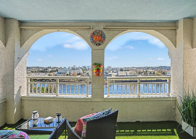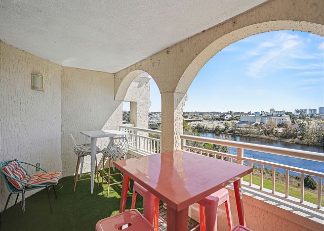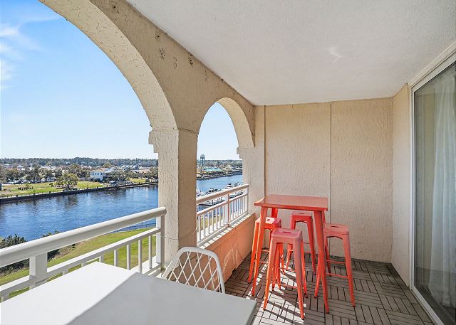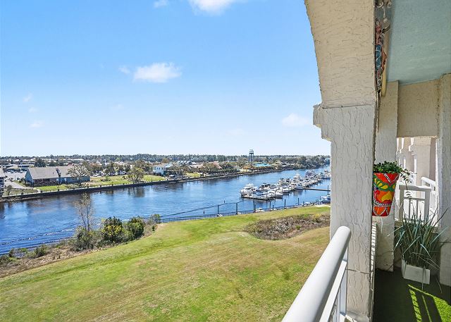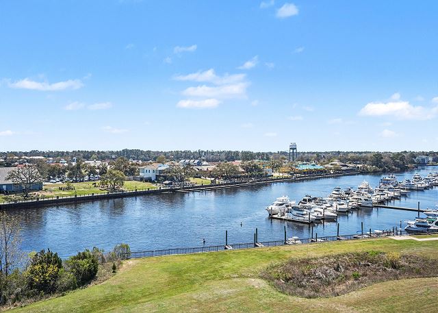 There are great views of the Marina and the Intracoastal Waterway and the large resort style pool area from the balconies. This is the perfect home away from home for your vacation! Barefoot Resort has 4 Championship Golf Courses to try if you like to golf. Or we can set you up with one of our professional Golf Masters to reserve your tee times.